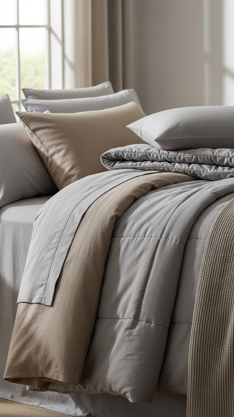 Greige’s warm undertone and soft grey’s cool layers set a calm backdrop—now bring that quiet complexity up close with tone-on-tone bedding and textiles. You’ll layer linens, quilts, and throws in varying shades to create subtle depth.