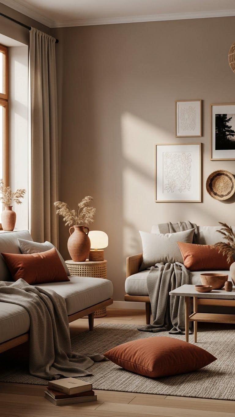 When you build a neutral scheme around earthy tones, you create a warm, textured backdrop that feels both modern and timeless.