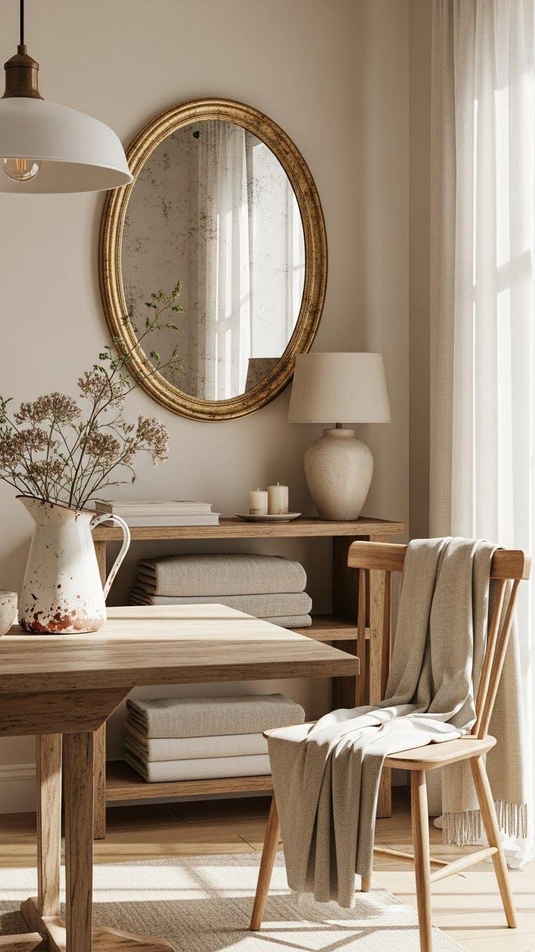 Bring in vintage pieces to give your neutral scheme a lived-in, cottage charm that feels curated rather than staged.