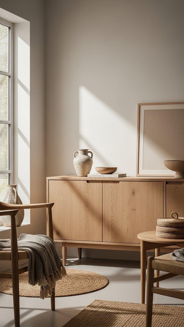 Bring natural wood finishes into your neutral scheme to add warmth, texture, and an organic anchor that feels both current and timeless. Choose pieces with beveled woodgrain for subtle depth and a matte oakfinish to keep surfaces calm, not glossy. Mix light and mid tones, let grain lead composition, and let handcrafted simplicity free your space while retaining a refined, enduring aesthetic.