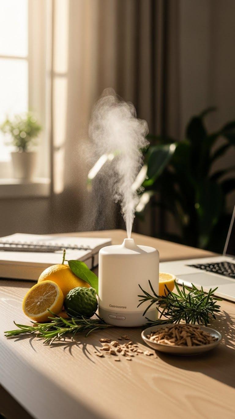 Although scent works quietly in the background, it can sharpen your attention and set the tone for focused work. You’ll choose light citrus or rosemary for alertness, practice scent layering with a subtle base (wood or vetiver) and a bright top note, and control scent timing—diffuse before deep work, pause for breaks—so fragrance supports rhythms without overwhelming freedom and clarity.