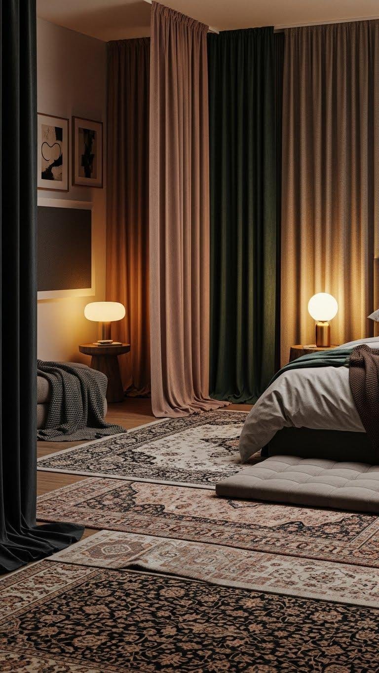 With heavy, textured drapery and layered rugs you’ll turn your bedroom into a quieter, more intimate retreat that feels thoughtfully curated rather than acoustically treated. Choose plush textiles and underlay for textile insulation, combine bold patterns with neutral tones, and place discreet acoustic panels behind artwork. You’ll enjoy softer echoes, personal privacy, and a liberated, serene space that invites lingering and connection.