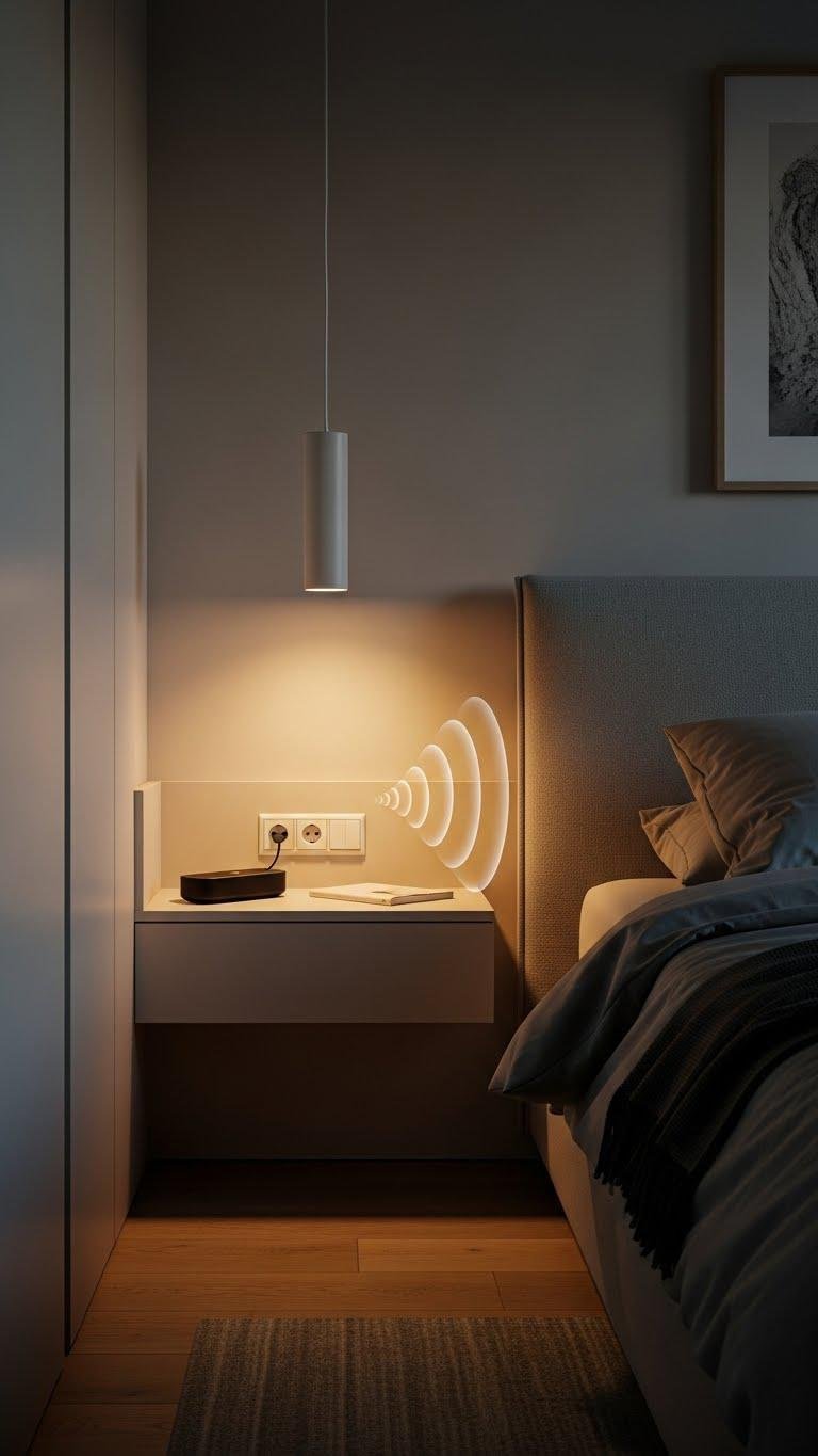 Frequently, a subtle soundscape is what shifts a bedroom from merely pretty to genuinely restorative: choose a compact, low-profile speaker or a built-in white-noise option that blends into your decor and fills the room with even, distraction-free sound.