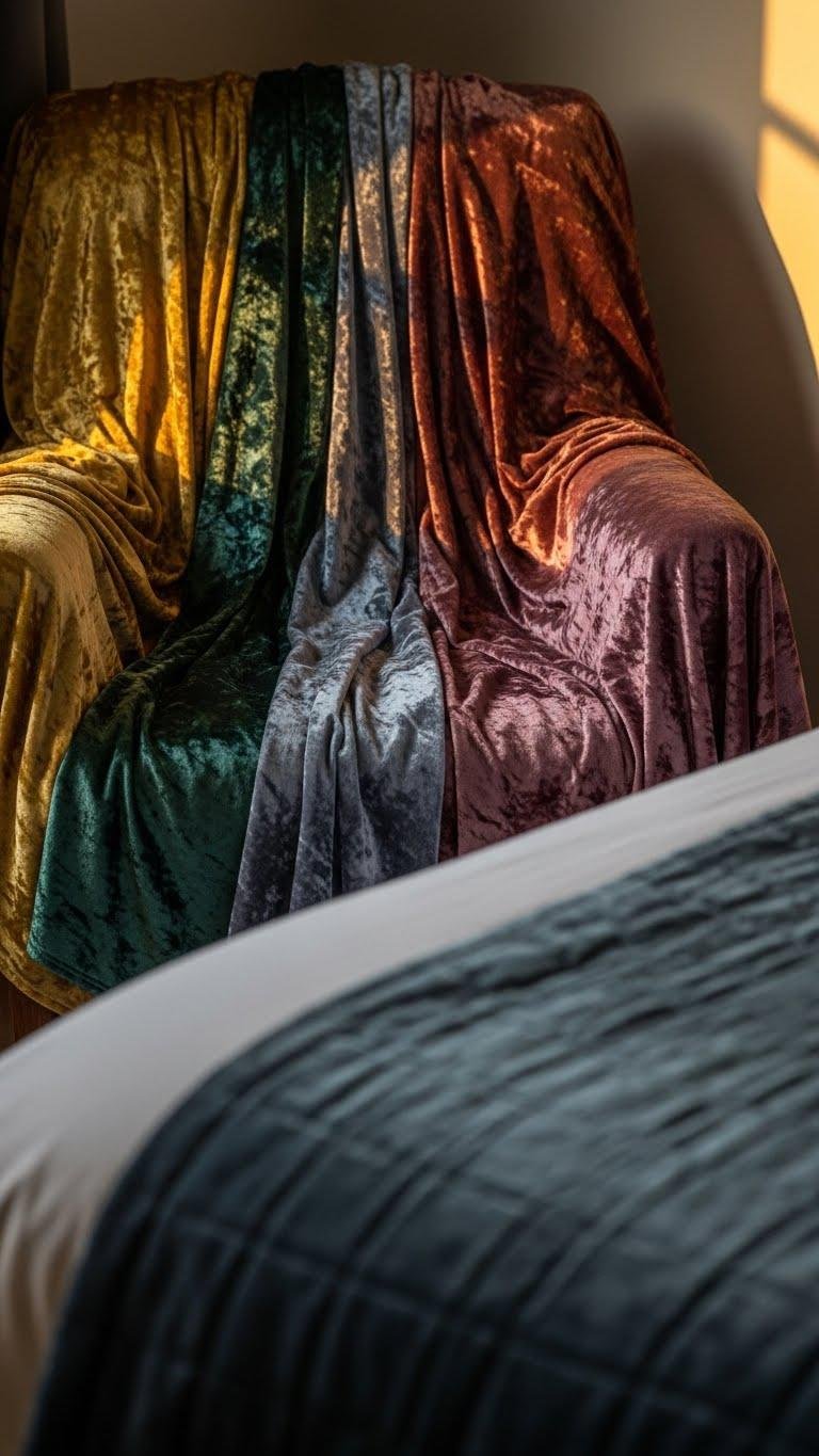 Drape a crushed velvet throw over your armchair or the foot of the bed to add instant glamour and a tactile lullaby to your room—its subtle sheen catches the light while the soft, slightly rumpled pile invites you to curl up. Choose antique velvet tones or modern hues, try DIY distressing for lived-in charm, and let the throw whisper comfort while you reclaim your space.