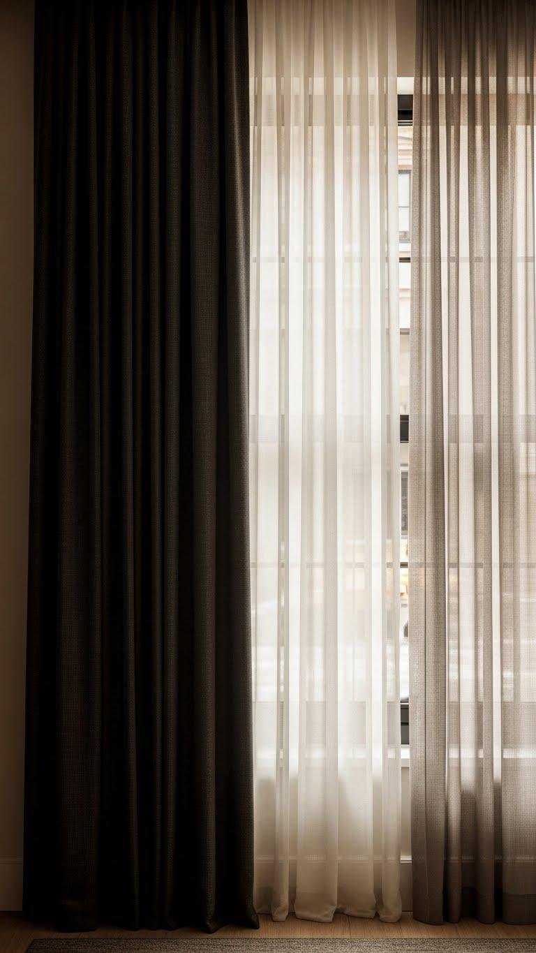 With layered curtains, you’ll turn windows into sound buffers that feel as deliberate as they look—heavy velvet or woven blackout panels closest to the glass, then lighter linen or sheer outer layers to soften light and add depth. You’ll add acoustic liners to tame street noise, combine blackout sheers for privacy and sleep, and keep the room feeling liberated, intimate, and quietly luxurious.