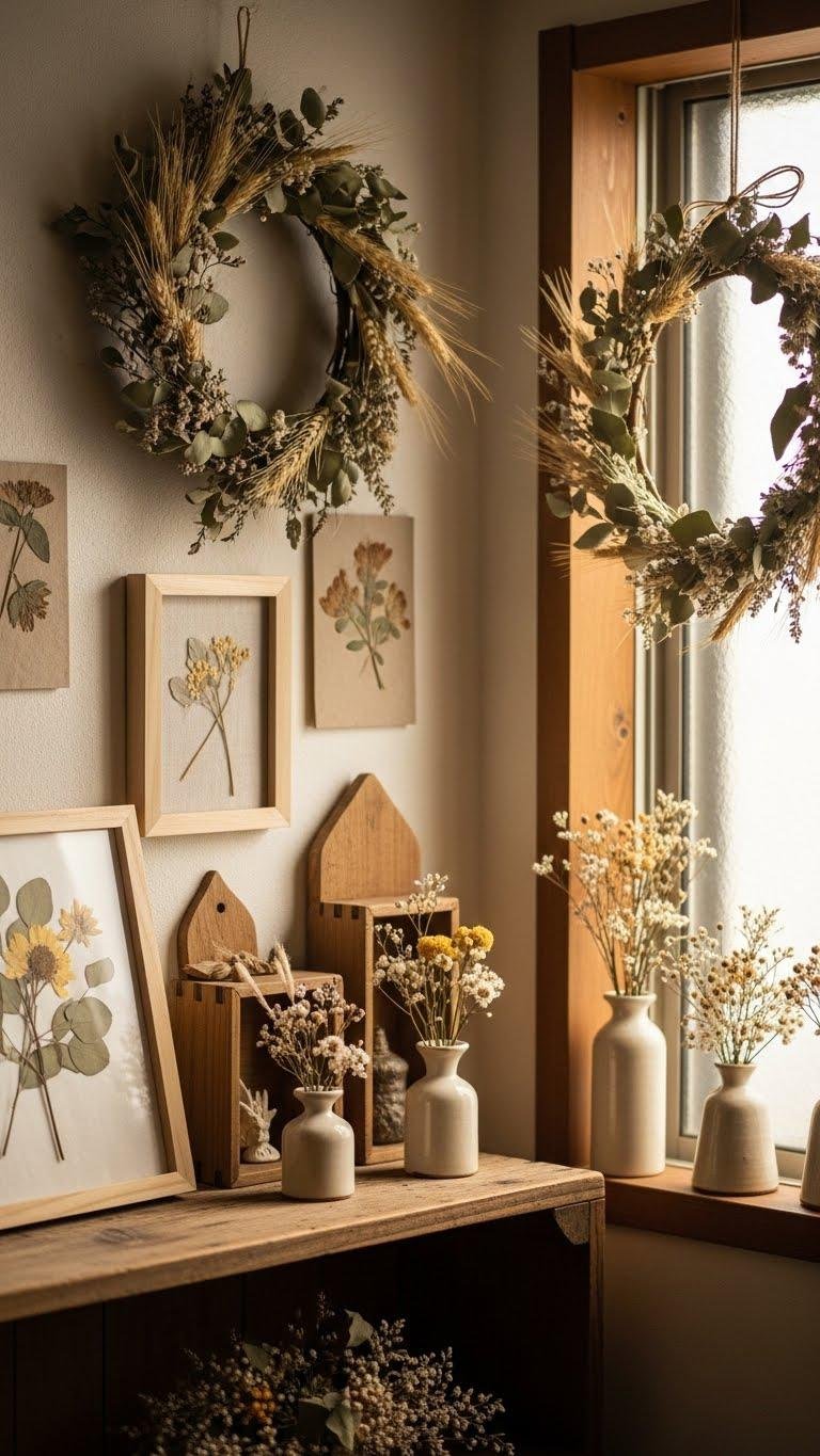 Echoing the slow, intentional pace of a well-kept home, dried flower arrangements and wreaths bring lasting texture and mood without demanding constant care.