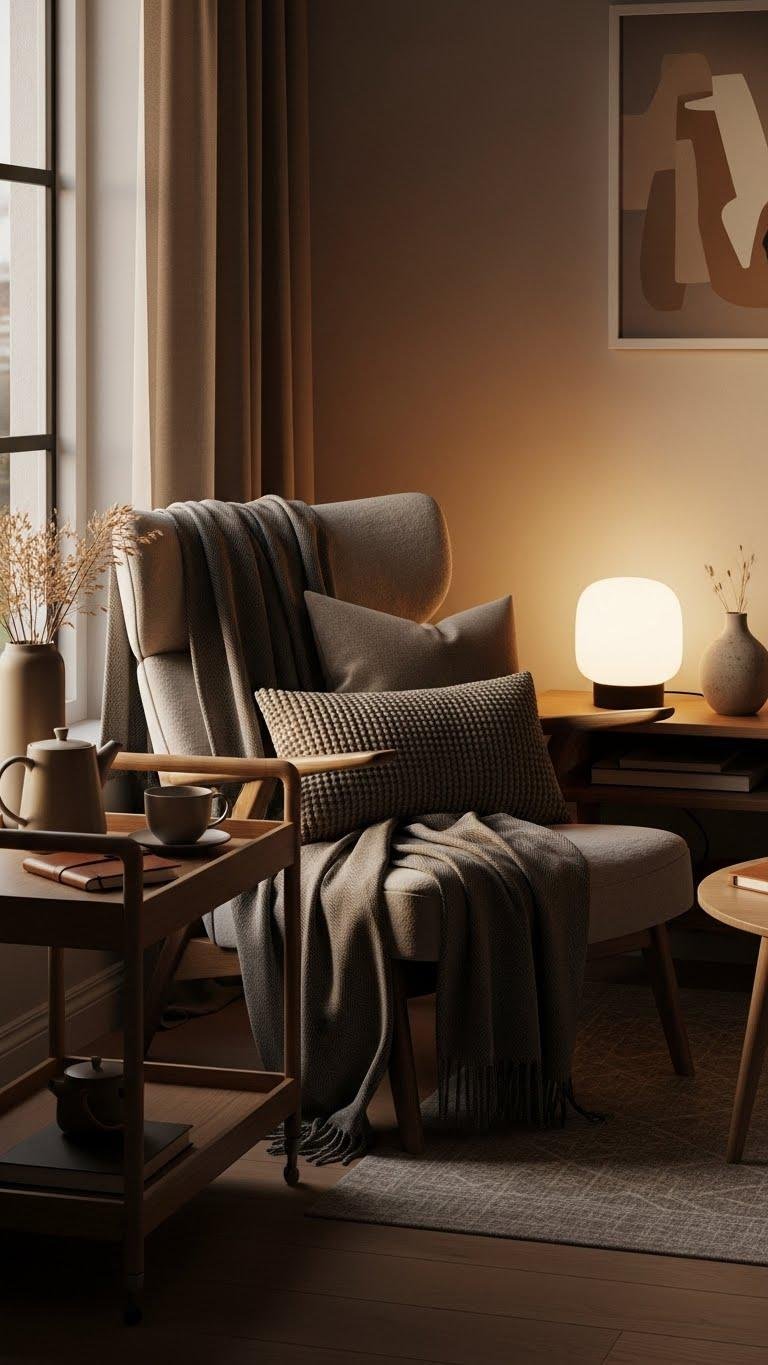 Choose tactile fabrics, muted hues, and movable pieces so your nook always feels like your escape.