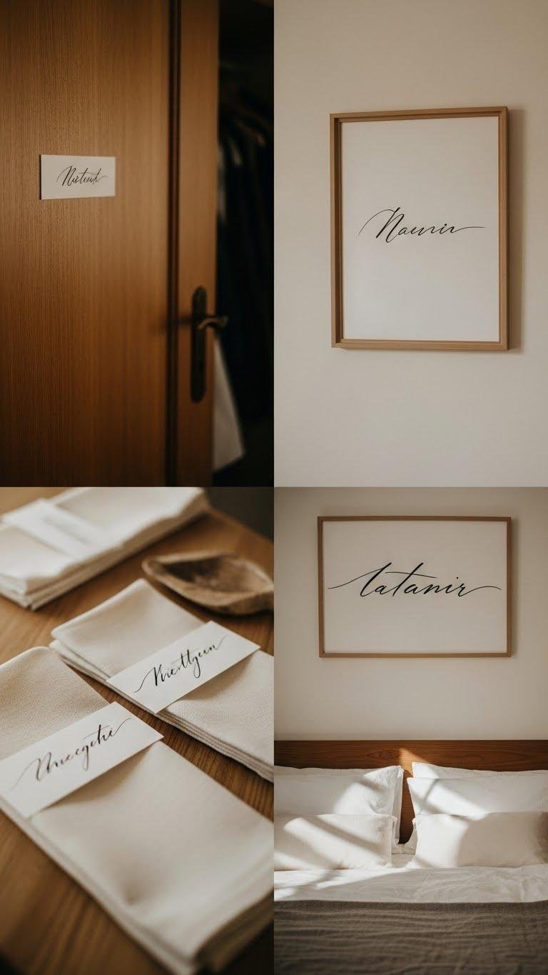 Sound shapes the hush of a room, and so do the curves of your handwriting—subtle calligraphy accents give sight the same quiet attention your playlist gives sound. You slip handwritten placecards onto linen napkins, hang inked nameplates on closet doors, and frame a single script line above a bed. These small, deliberate marks free your space to feel intimate and intentional.