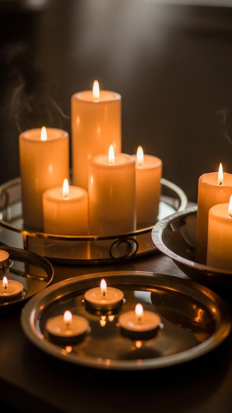 A cluster of candles instantly softens a room, pooling warm light and a gentle scent that makes evenings feel deliberate and intimate. Arrange varying heights on mirrored trays to amplify glow; tuck floating tea lights into shallow bowls for a playful, liberated vibe.