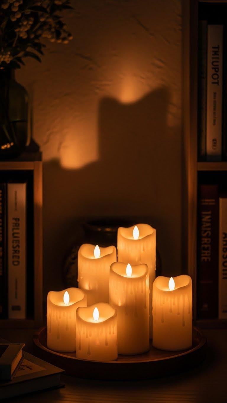 If you love the warmth of clustered candles but want safer, low-maintenance options, electronic candles with realistic flicker give you the same glow without open flame.