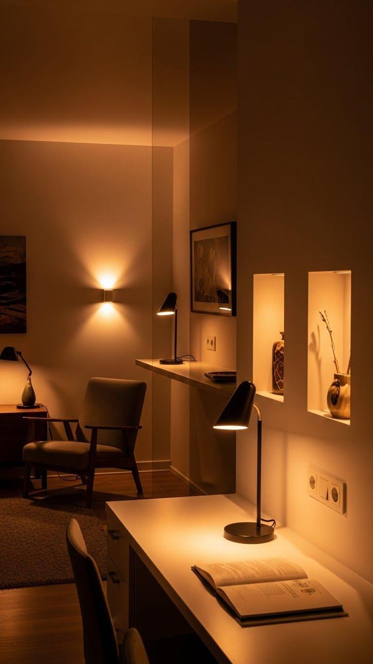 You’ll use dimensional lighting to sculpt space, dialing warmth or clarity for any activity. Install smart switches for effortless scenes, so you can shift ambiance instantly and reclaim your freedom to shape daily rhythm.