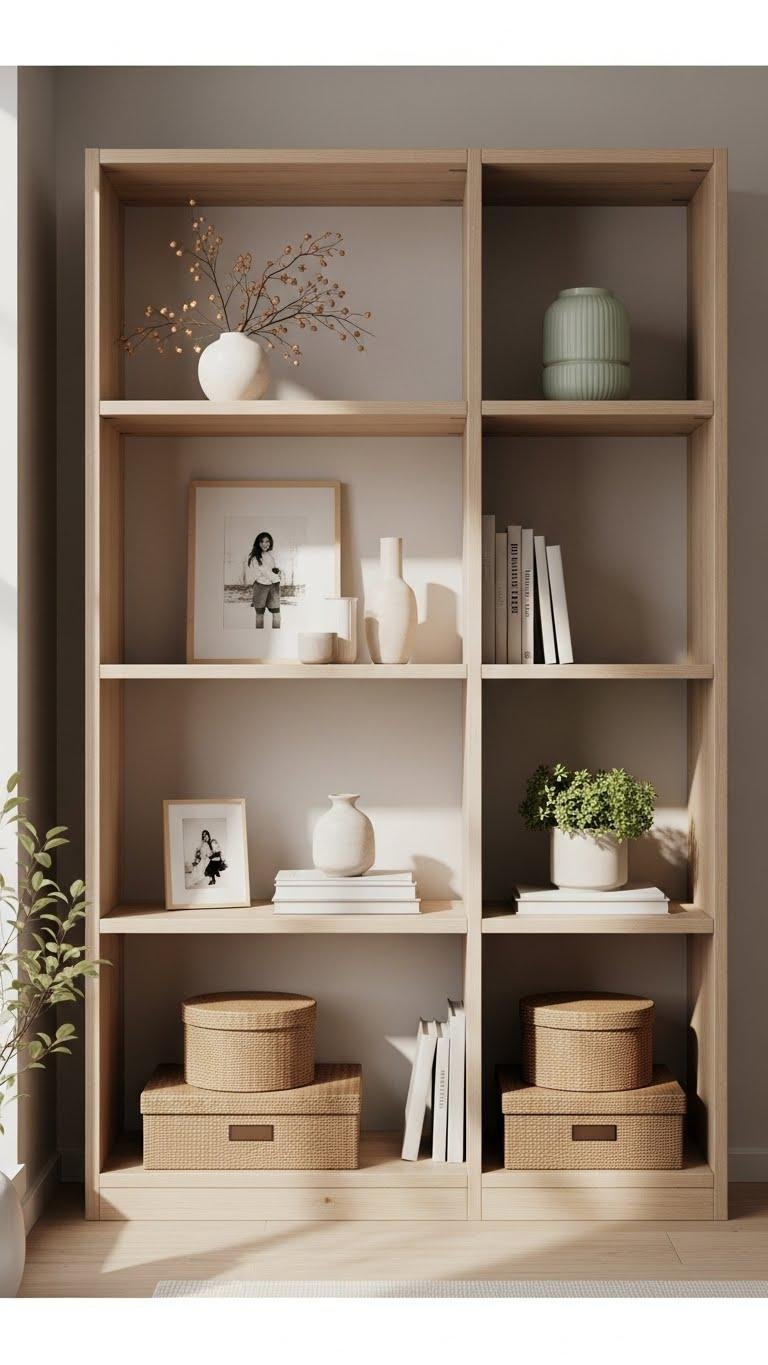 Tall shelving clears the floor so the eye rests on fewer surfaces — now make those surfaces feel intentional by rotating personal objects seasonally. You’ll practice seasonal rotation like a ritual: choose a few meaningful pieces, swap them each season, and store the rest. This display editing keeps surfaces calm, highlights what matters, and gives your room a liberated, ever-evolving mood without clutter.