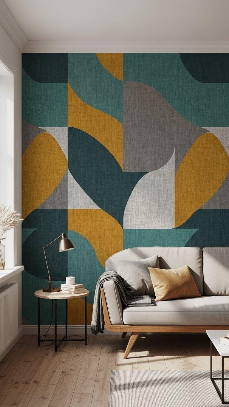 If you want to give a room a clear point of interest without overwhelming the space, place a single patterned accent wall directly behind a focal piece—like a sofa, bed, or fireplace—to frame it and draw the eye.