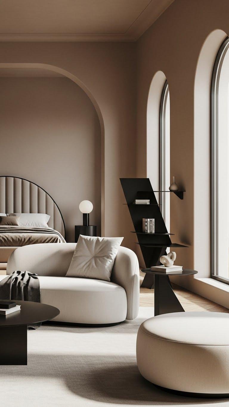 You’ll balance bold angles with gentle forms, creating a liberated, calm room. Choose proportionate curves and crisp materials so the result stays refined, cozy, and effortless.