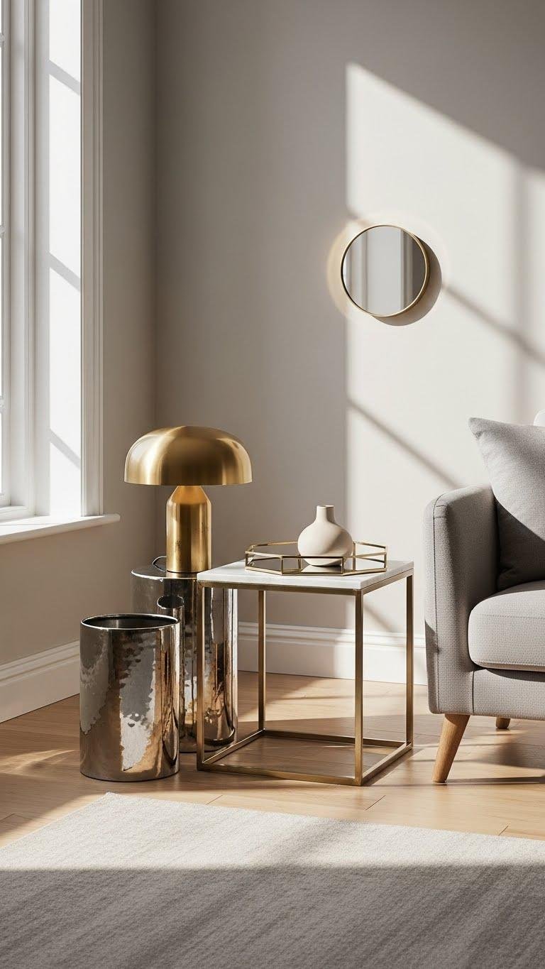 A few well-placed metallic accents can instantly lift a room’s mood and catch seasonal light without overcrowding your scheme.