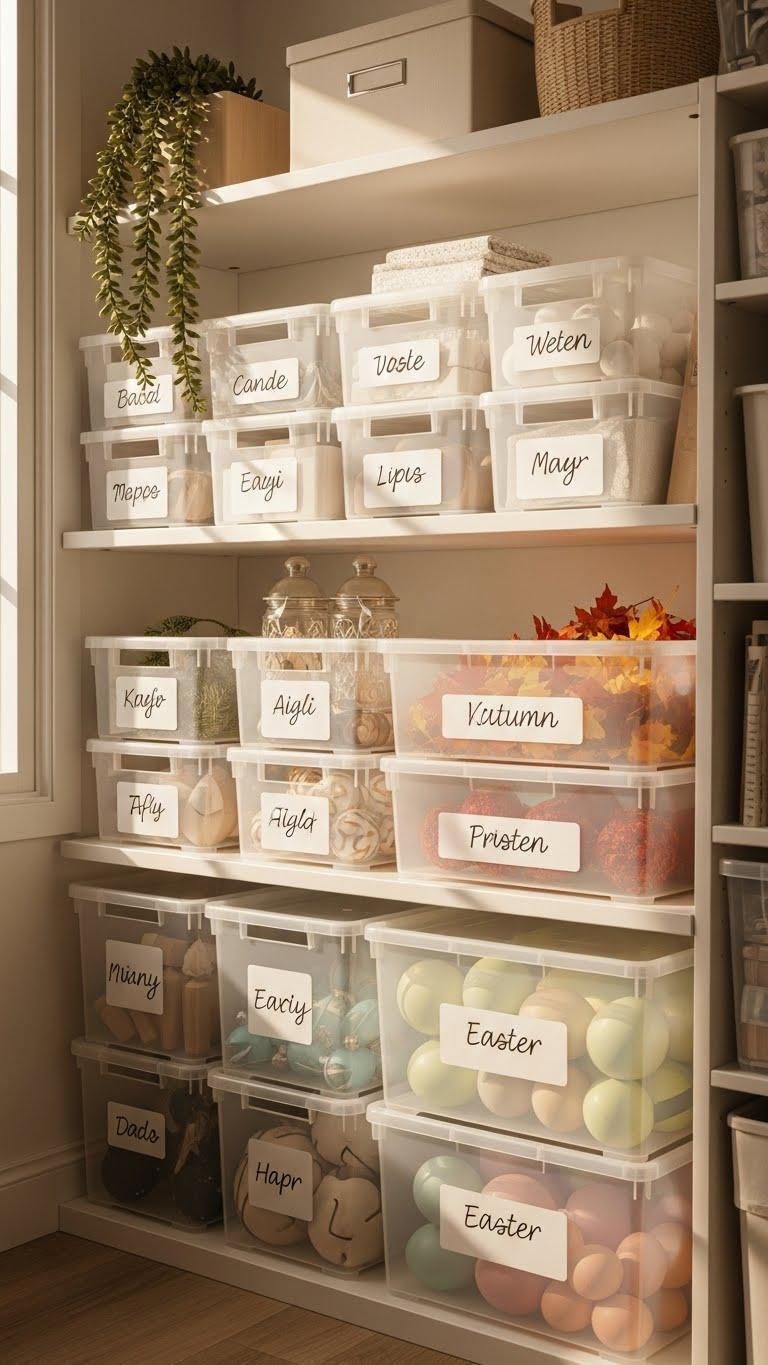 You’ll label each tote clearly, creating a simple seasonal inventory you can access anytime.