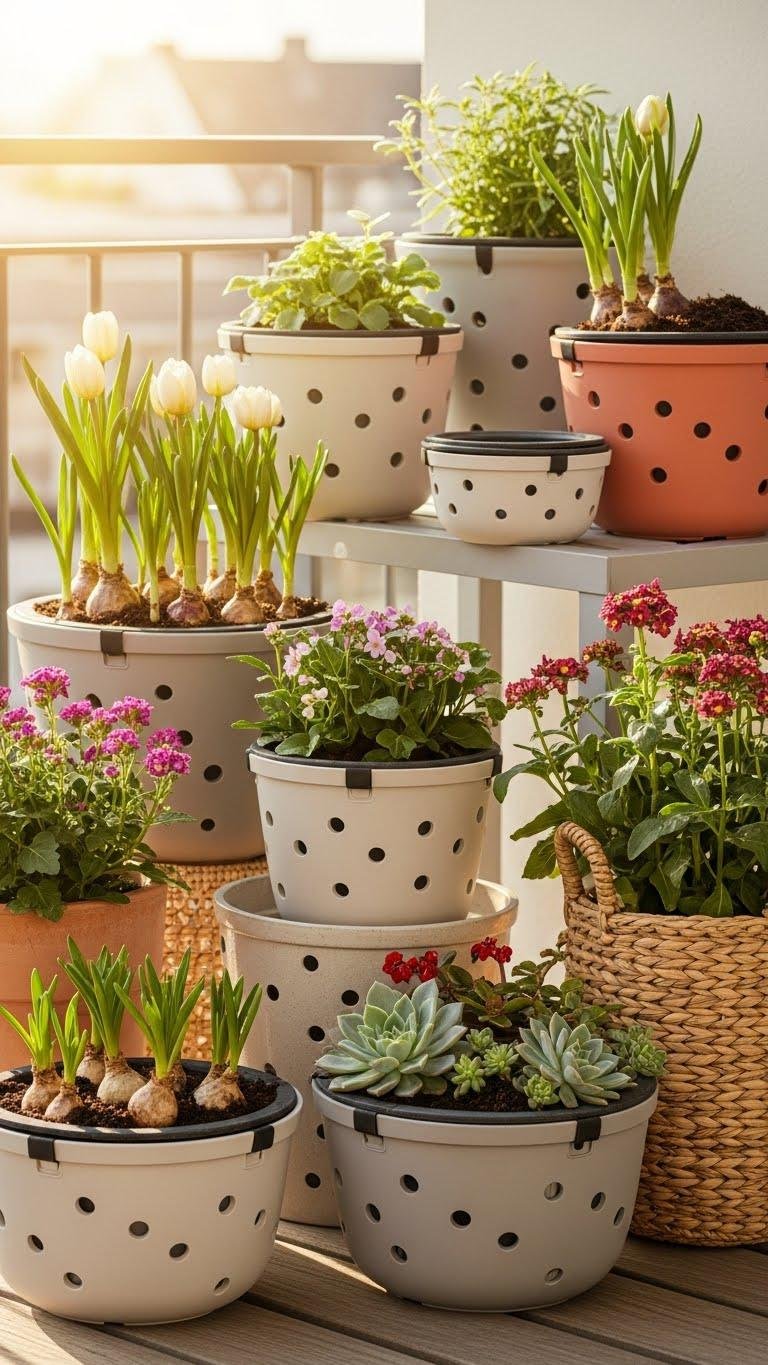 Choose pots with reliable seasonal drainage and lightweight materials so you can swap displays fast. Use modular liners to shift bulbs, annuals, or succulents without repotting. Opt for neutral shapes that let you change color and texture freely, keeping maintenance minimal and style effortless.