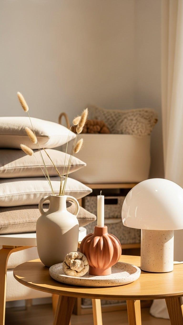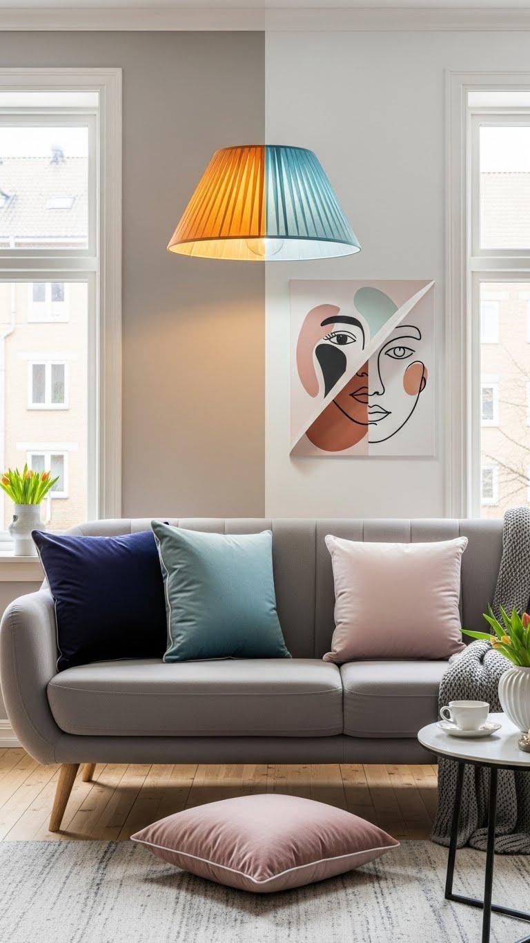When you bring in trendy pieces, keep them small and easy to swap—think throw pillows, vases, candles, or a statement lamp—so you can update the look without committing to big-ticket items.