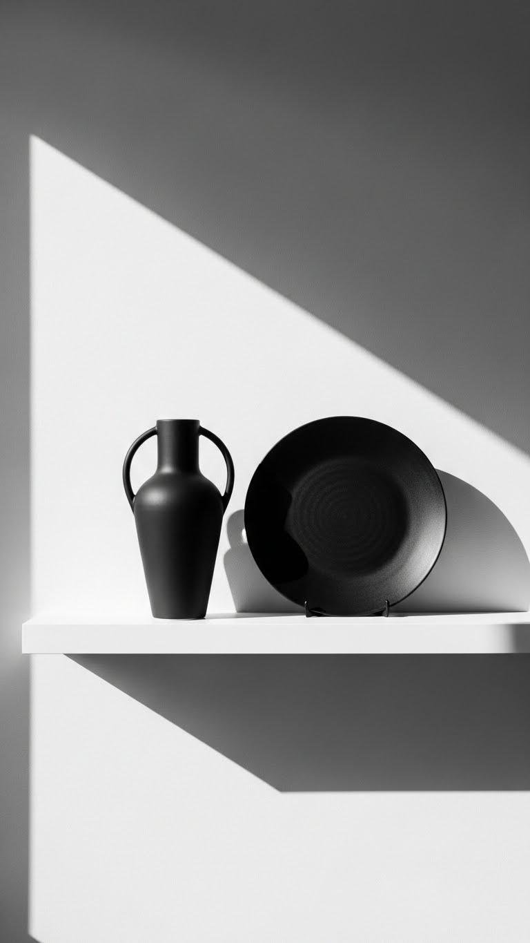 Keep sleek silhouettes, pared-back palettes, and purposeful gaps so each object feels free, deliberate, and striking.