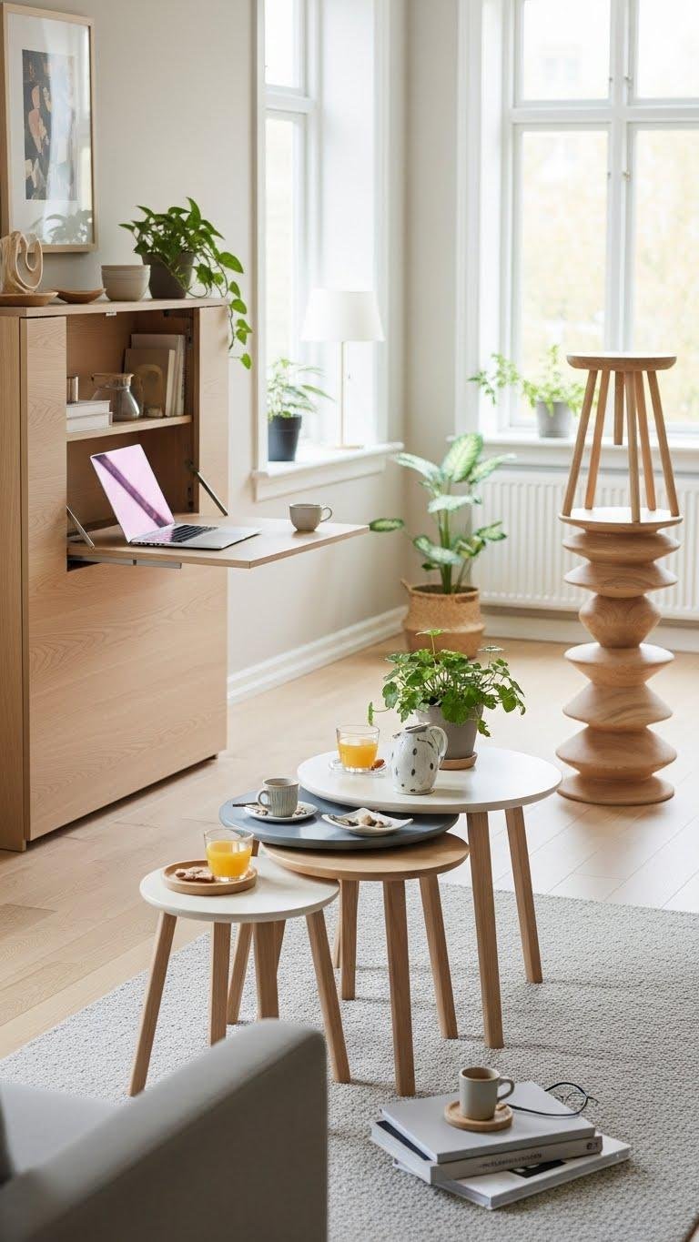 You’ll embrace nesting aesthetics that layer surfaces without clutter, pulling tables out for drinks, work, or plants.