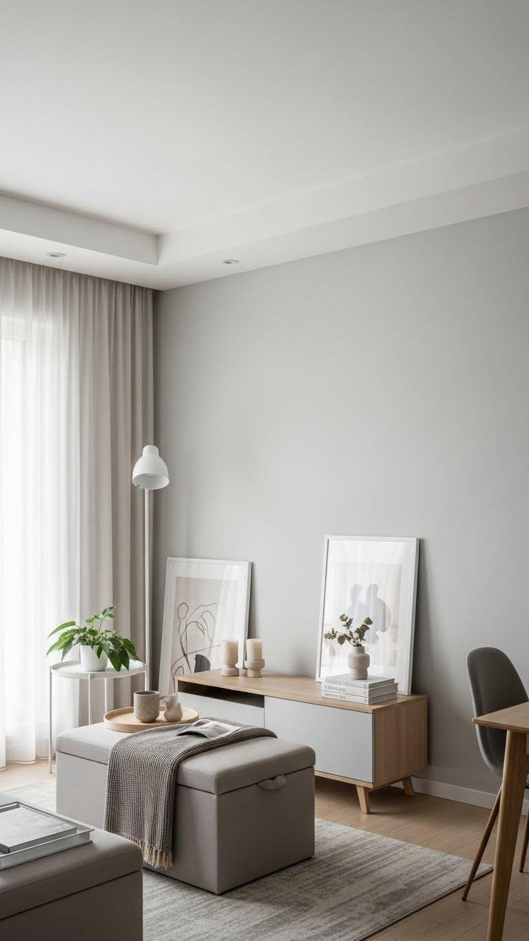 If you love the clean, multifunctional feel a storage ottoman brings, extend that airy sensibility to your walls by choosing light, neutral paints. You’ll open sightlines and ease movement with soft gray or warm beige, creating a calm, adaptable backdrop.