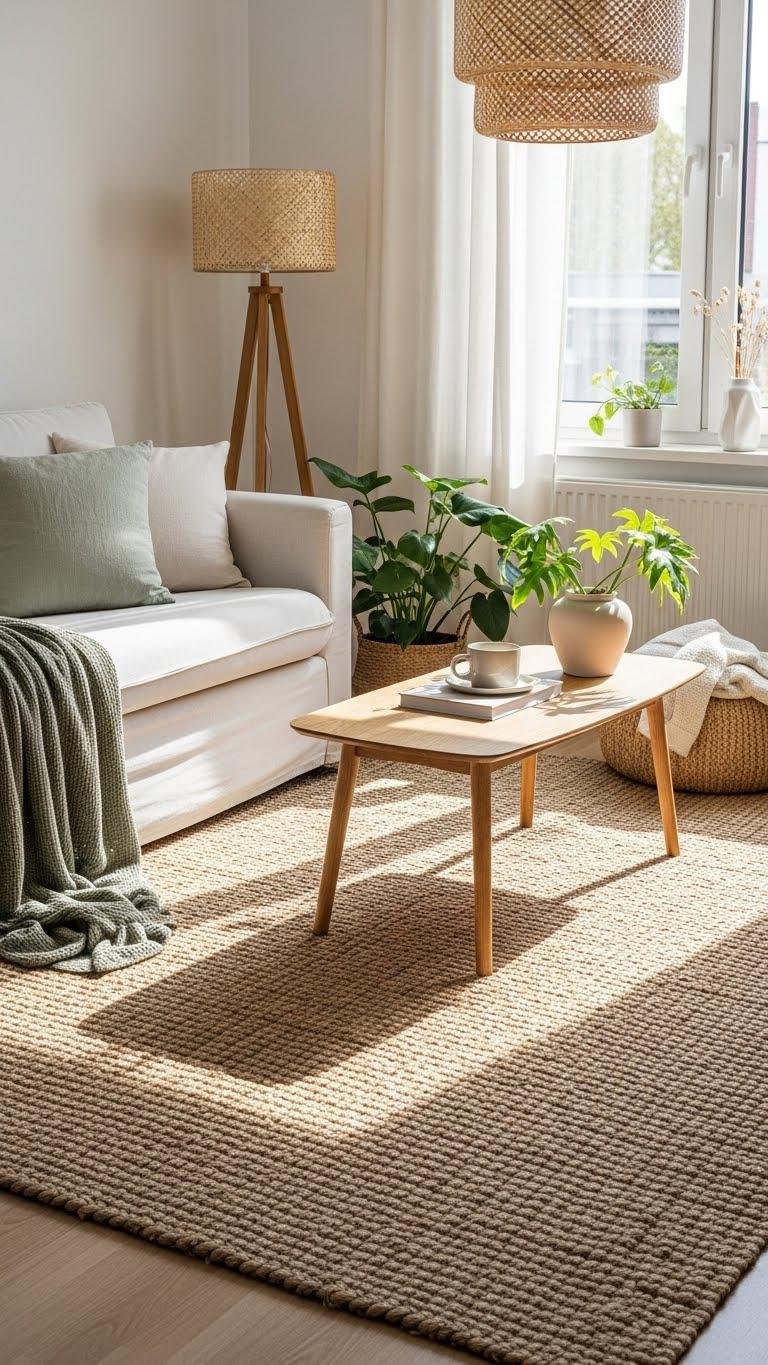Bringing a jute rug into your living area instantly anchors the room and adds natural texture without overwhelming the palette.