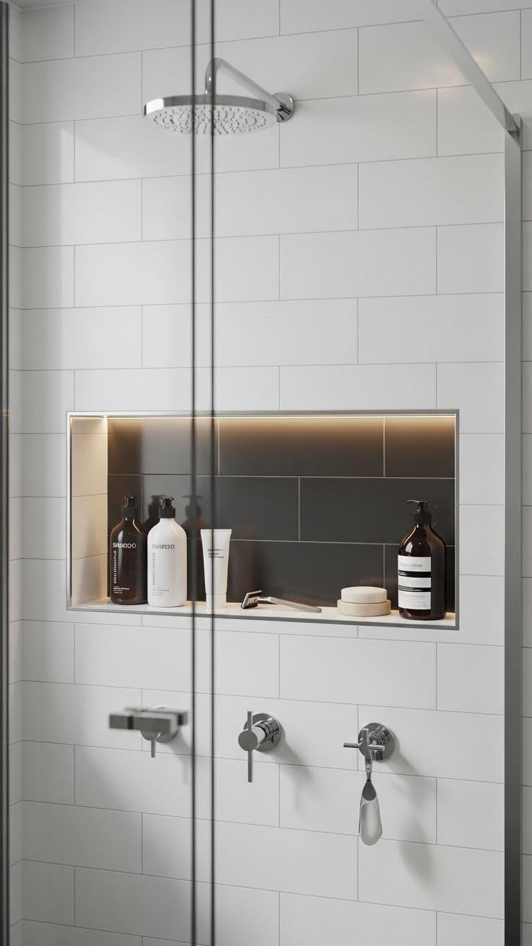 Because your shower is where clutter shows up fastest, a recessed niche gives you a sleek, out-of-the-way spot for bottles, bars, and razors that keeps lines clean and surfaces easy to wipe down.