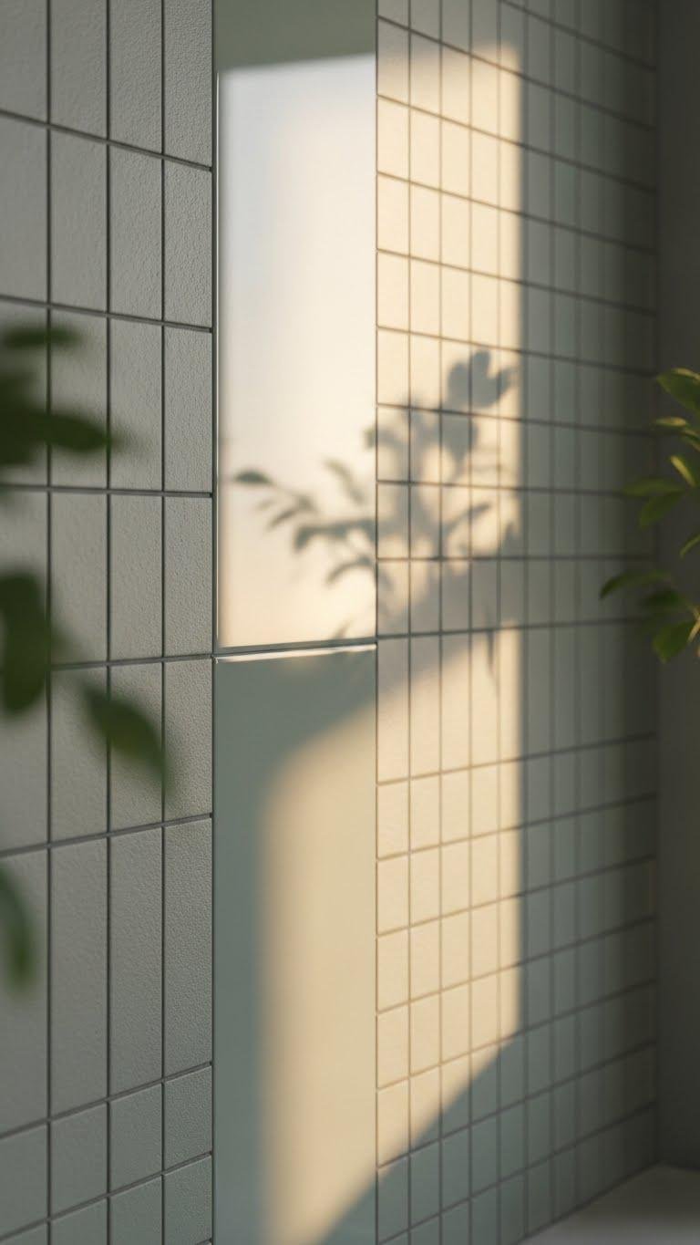 If you love the low‑maintenance freshness faux botanicals bring, carry that same effortless strategy into your tile choices by pairing matte and gloss finishes for subtle texture. You can mix a matte mosaic field with a gloss accent strip to catch light without shouting. Keep palettes soft—sage, sand, pale gray—so surfaces feel open, calm, and free to breathe.