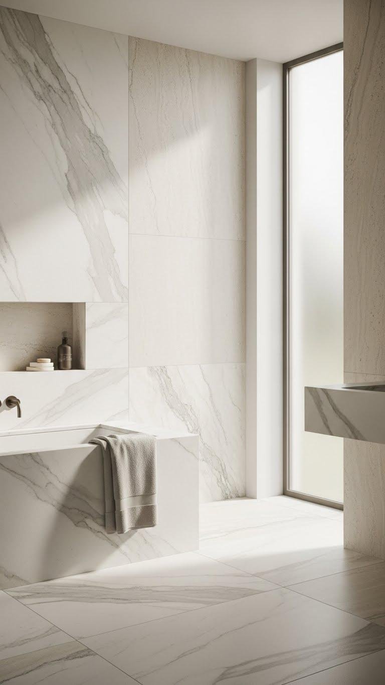If you layer natural stone or convincing stone-look surfaces, you’ll add depth and a quiet, grounded luxury to your spring bathroom. Choose tiles with soft calacatta veining and a honed finish for tactile, low-glare surfaces. Mix slab accents with matching shower walls or a backsplash to keep the palette airy. The result feels effortless, modern, and unconfined.