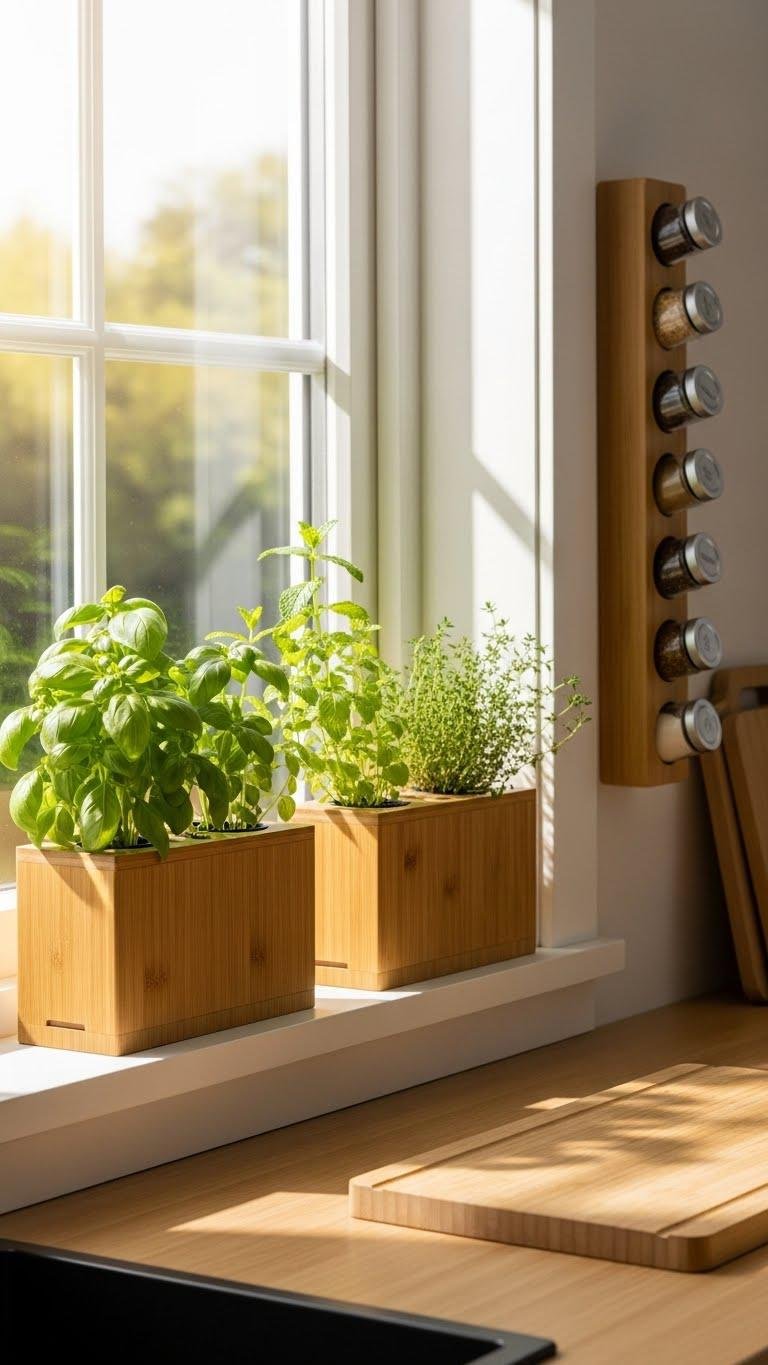 Planting a compact indoor herb garden in bamboo planters brings fresh flavor and natural texture into your spring decor while staying neat and low-maintenance. Arrange basil, mint, and thyme in bamboo self watering pots on sunny windowsills. Mount vertical spice racks to save counter space and create a liberated, organized display. You’ll enjoy easy harvesting, reduced waste, and a breezy, practical vibe.