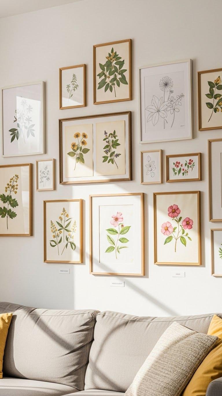 A curated gallery wall of botanical prints can instantly bring spring’s freshness into your room, giving you an easy focal point that feels both collected and cohesive.