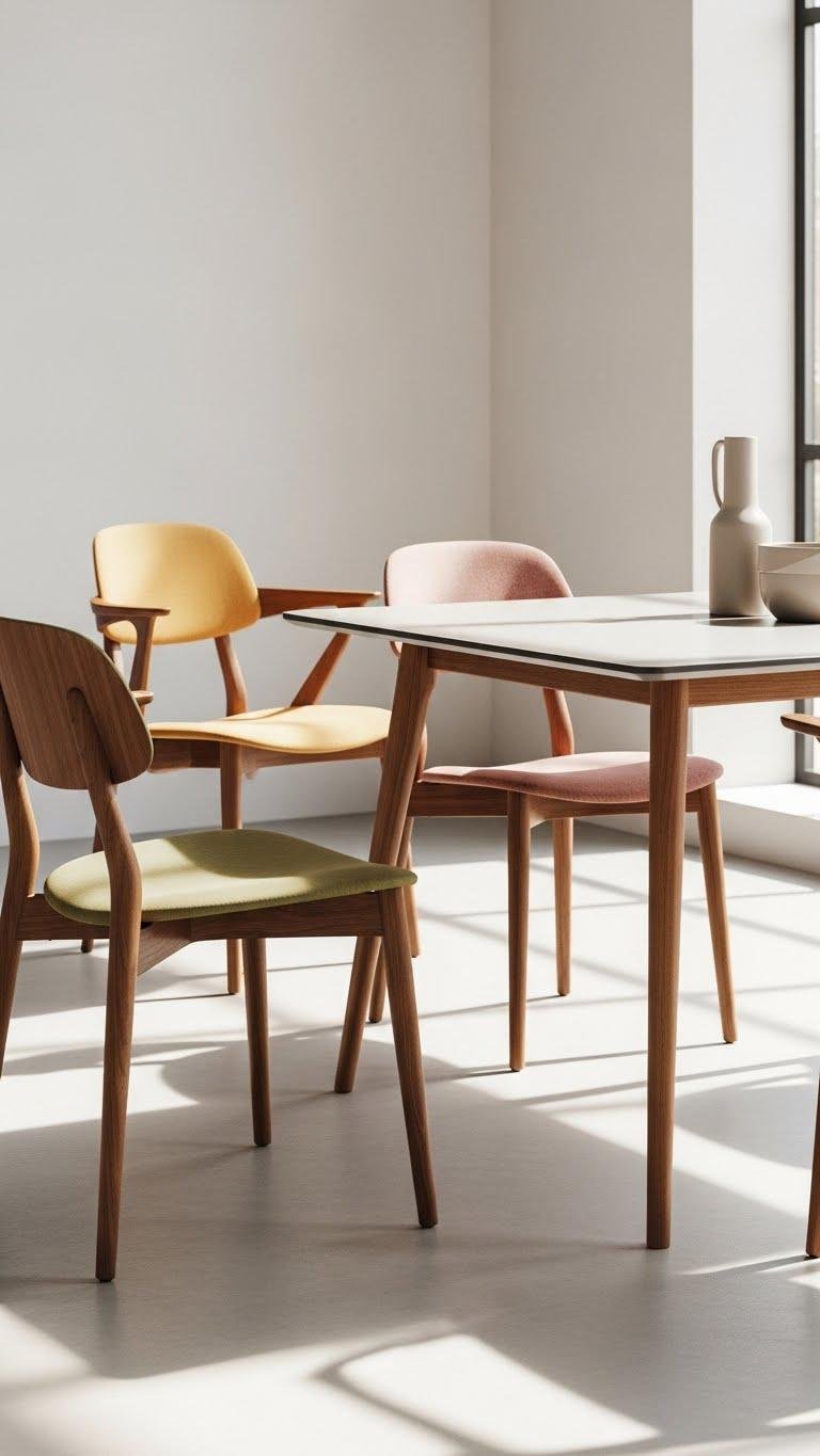 When you pair sculptural mid-century chairs with a minimalist table, you get a balance of character and calm that elevates a room without cluttering it. Choose retro silhouettes in warm wood or muted upholstery, then let a simple table provide negative space. You’ll create sleek contrasts, practical proportions, and an airy, liberated vibe that keeps movement and conversation effortless.