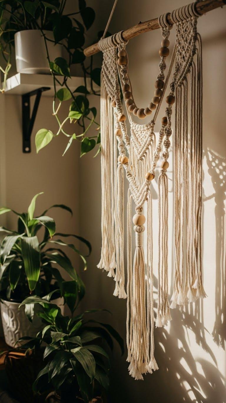 Incorporate Macramé Wall Hangings With Wooden Beads
