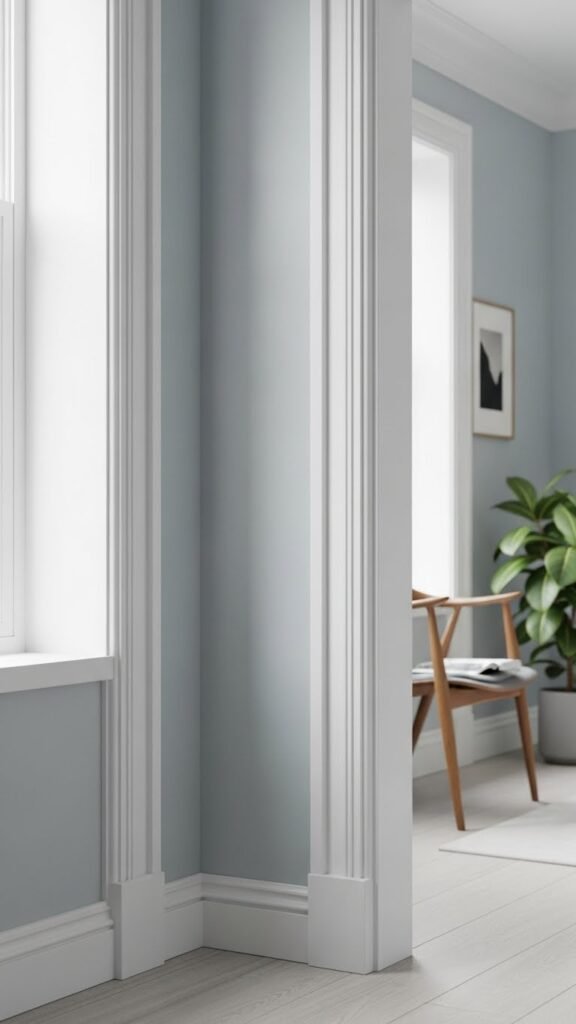 You’ll choose matte trim for a modern, restrained finish that contrasts walls without glare. Pick whites with cool undertones to make colors pop and spaces feel airy.