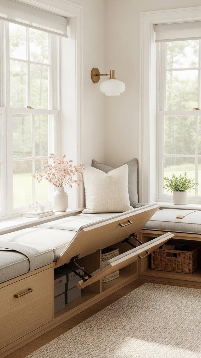 Tucked under a sunny window seat or built into a dining nook, hidden storage behind built-in seating turns dead space into streamlined function you actually want to use.