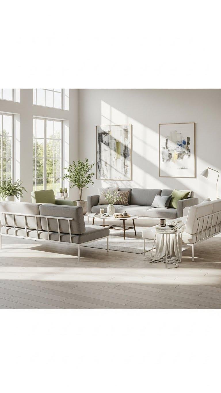 Choose low profile seating with slim legs, narrow arms, and low backrests so your space breathes. You’ll enjoy sightline optimization that connects seating to windows and artwork, encourages flow, and feels effortless — freeing the room and your mind for lighter, livelier spring days.