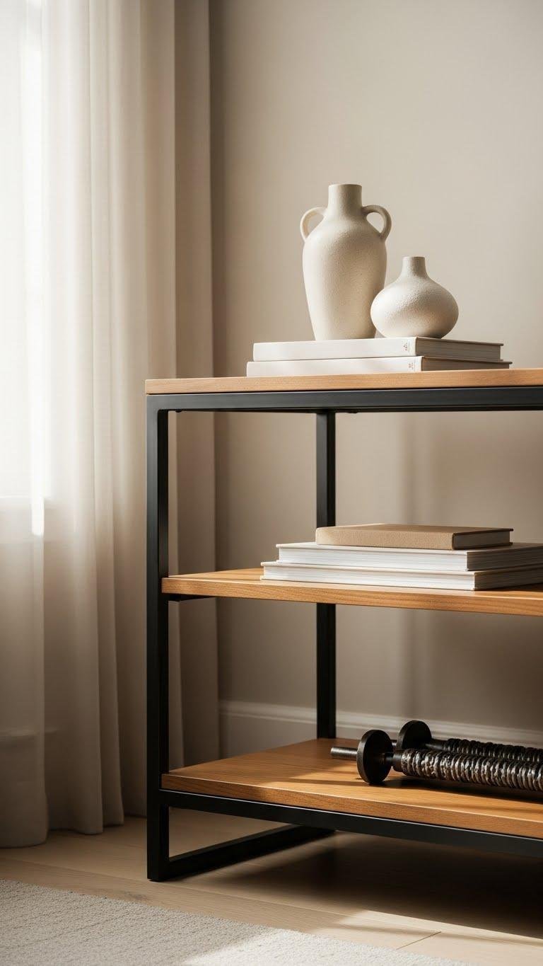 Framed in matte black metal, warm wood shelves bring instant contrast and an industrial-chic edge to your TV stand while keeping the look grounded and approachable. You’ll craft a bold focal point that celebrates industrial contrast and natural grain. Keep styling minimal: a low stack of books, a sculptural vase, and textured hardware for tactile detail — freedom in curated simplicity.