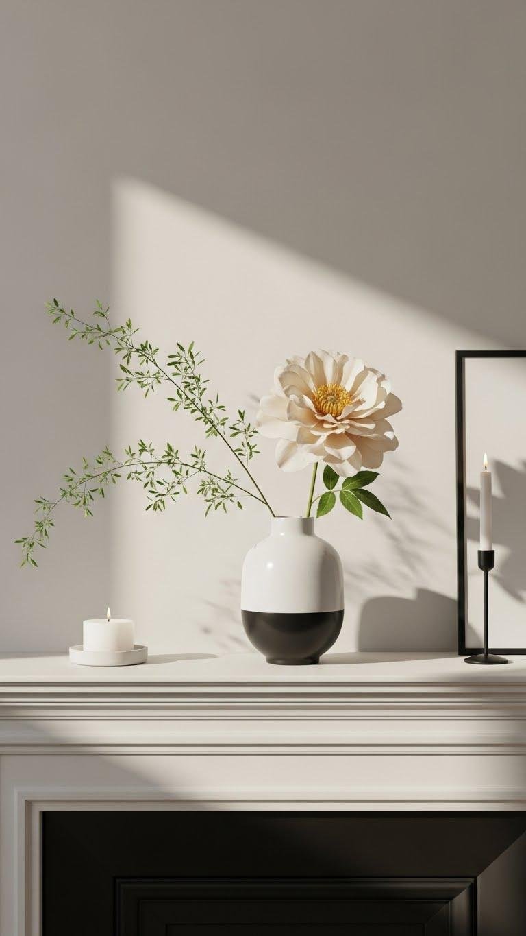 Anchor your mantel with one striking, oversized bloom and build subtle layers around it so the arrangement reads purposeful rather than cluttered.