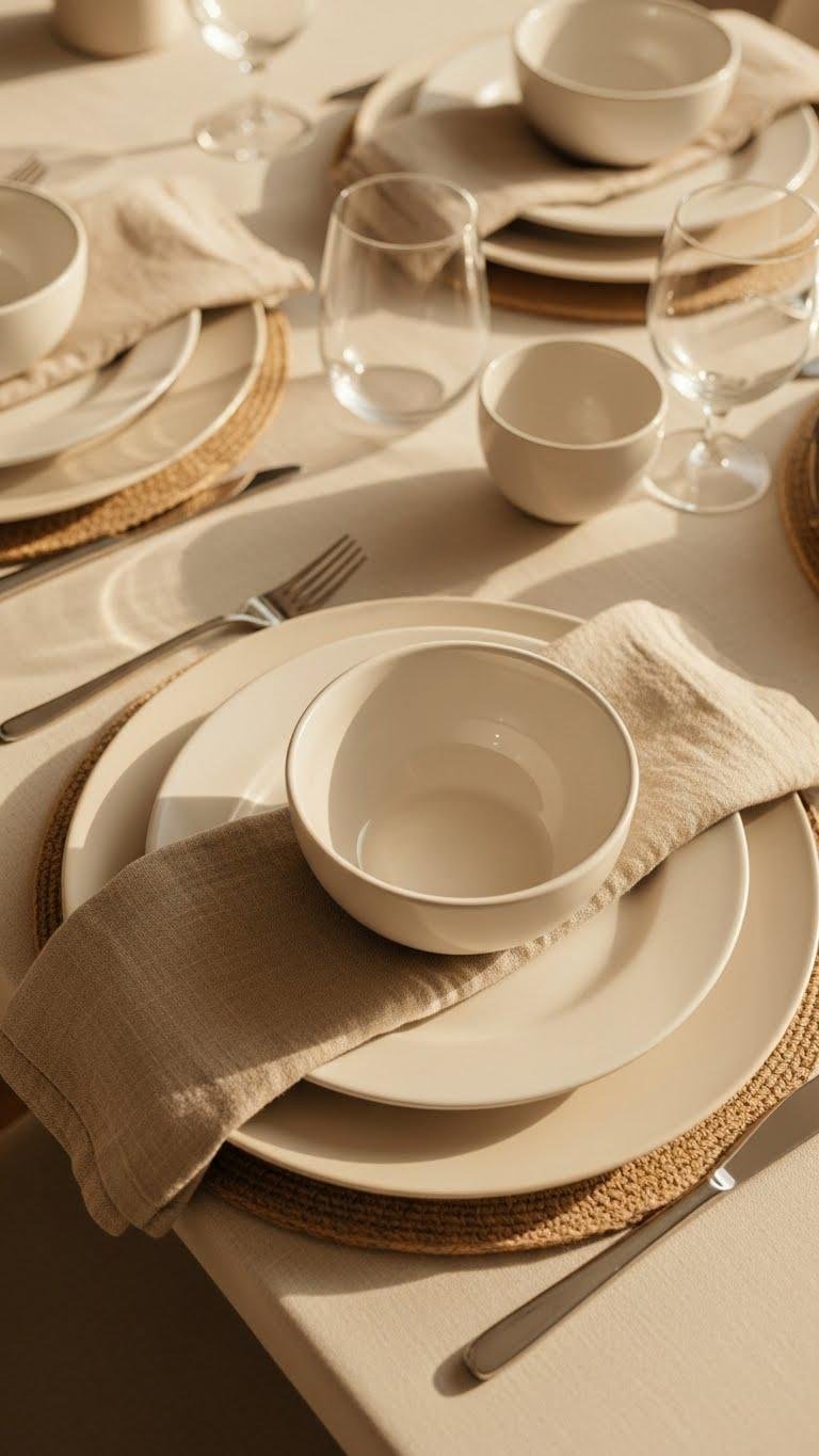 Anchor your table with cream charger plates paired with soft linen napkins to create a refined, tactile base that balances warmth and simplicity. Choose charger sizing to frame plates without crowding place settings, and fold napkins to showcase linen textures.