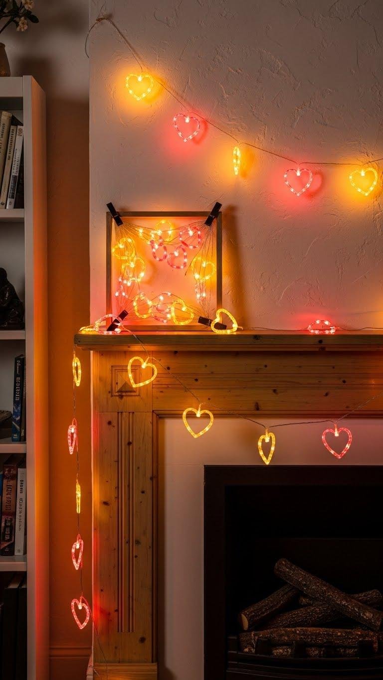 Stringing heart-shaped lights along a mantel, bookshelf, or across an accent wall instantly adds a playful, intimate layer to your living room—softly contoured LEDs glow in warm amber or rosy hues, tracing a romantic outline without overwhelming the room.