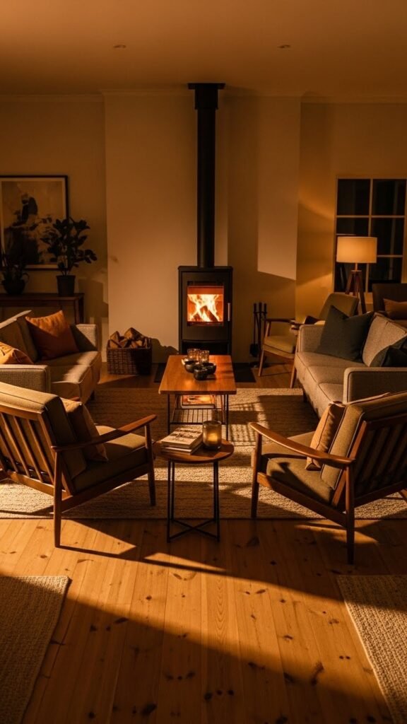 When you arrange seating to face a heat source—whether a crackling fireplace, a sleek wood stove, or a glowing electric insert—you create a natural focal point that invites conversation and relaxation. Orient chairs in a heat focused layout that balances warmth and sightlines.