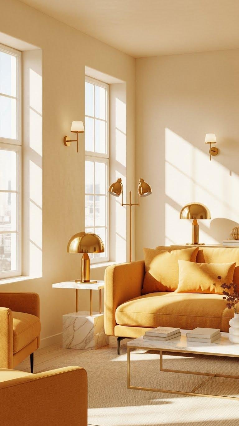 Brighten the room with buttery yellows that feel warm without overwhelming—think sunlit cream and soft ochre applied generously across walls, upholstery, or a single statement sofa.