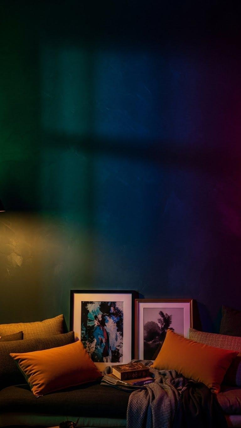 Warm pillows set the mood, but a richly pigmented wall will anchor the whole room and amplify that cozy vibe. Choose jewel tones—deep emerald, sapphire, or aubergine—and consider moody plaster for tactile depth.