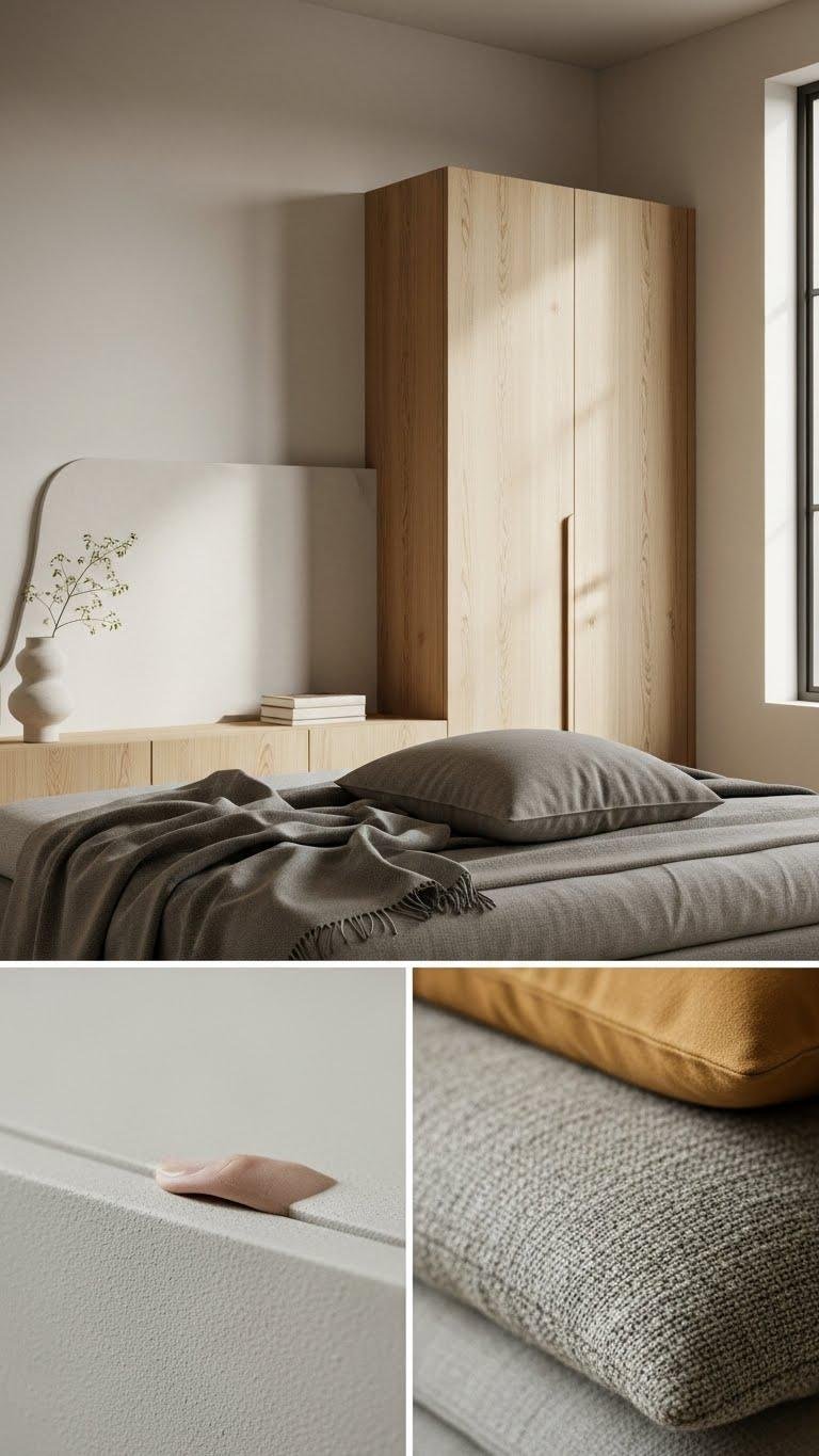 By layering matte, tactile finishes across walls, cabinetry, and textiles, you’ll anchor the room with subtle depth that resists glare and invites touch. Choose matte paint for walls to mute light and highlight form; add tactile panels behind a bed or console for sculptural warmth.