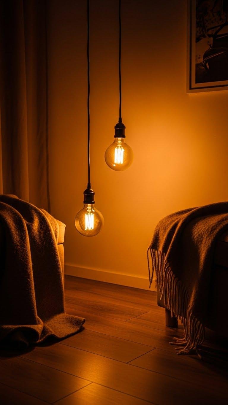 Swap in 2700–3000K bulbs to instantly soften a room and flatter warm materials like wood, wool, and matte finishes.